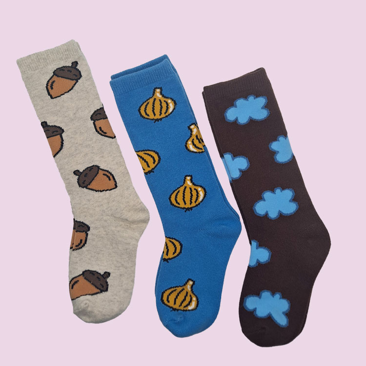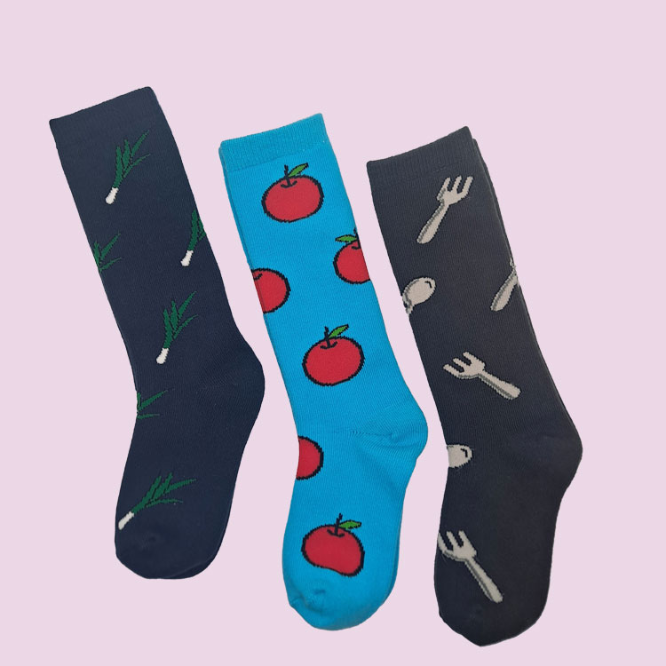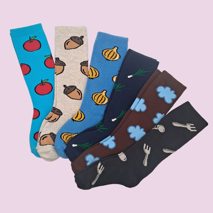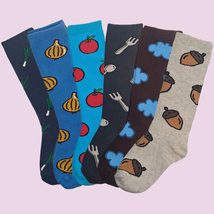 사과, 도토리, 양파, 대파, 구름, 포크+숟가락 등의 디자인을 넣은 양말인데요...